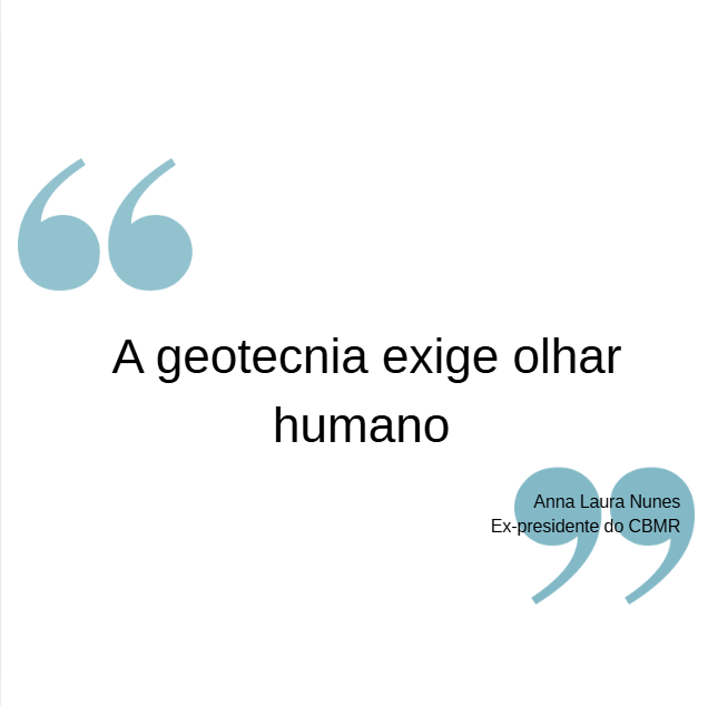 Anna Laura também deixa claro que geotecnia é um campo amplo, englobando mecânica dos solos, mecânica das rochas e geologia de engenharia. Durante sua gestão no CBMR, lutou contra o preconceito que separava essas disciplinas, promovendo a integração com a ABMS. Um marco foi unir o Simpósio Brasileiro de Mecânica das Rochas ao Cobramseg, fortalecendo eventos conjuntos.
